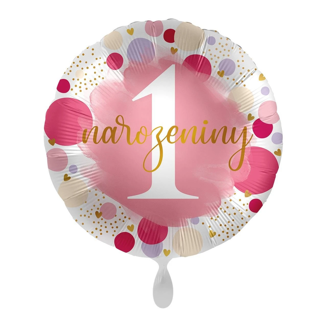 Fóliový balónek s plnobarevným českým potiskem " 1. narozeniny " z obou stran, využijete k výzdobě první narozeninové oslavy Vaši holčičky.