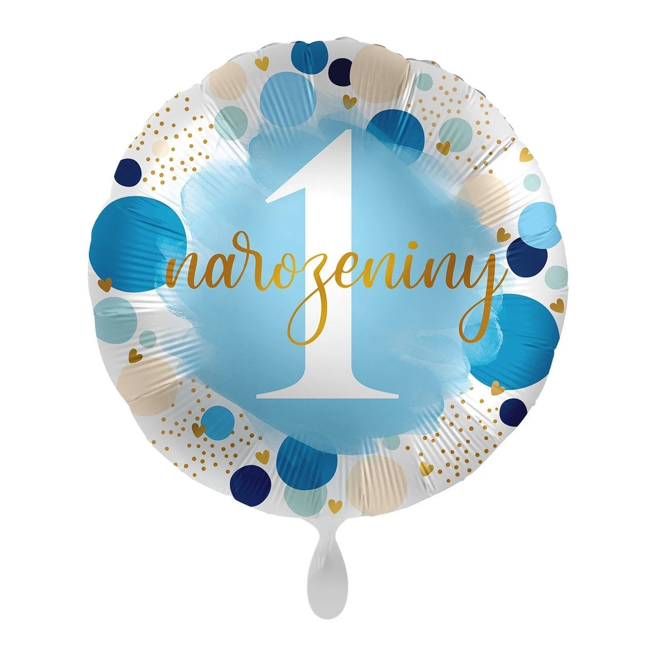 Fóliový balónek s plnobarevným českým potiskem " 1. narozeniny " z obou stran, využijete k výzdobě první narozeninové oslavy Vašeho chlapečka.