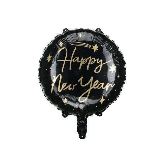Černý foliový balónek se zlatým nápisem "Happy New Year" rozjasní atmosféru vaší silvestrovské párty.
