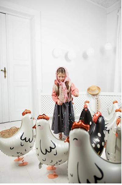 Tahle chodící foliová slepička je přesně ten typ doplňku, který promění obyčejnou výzdobu v zážitek. Díky speciálnímu provedení se po nafouknutí chová tak, že vypadá, jako by sama chodila po prostoru – a děti z ní jednoduše nespustí oči.