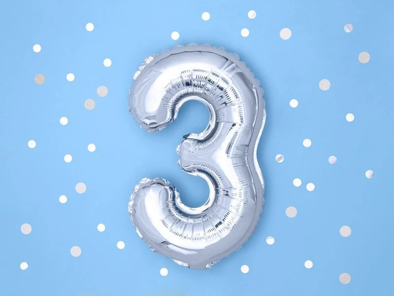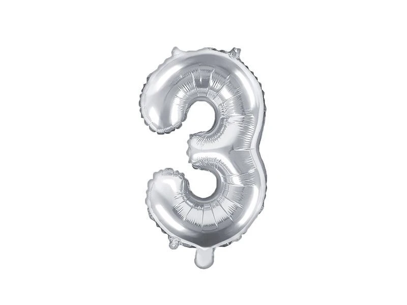 Balón foliový číslice STŘÍBRNÁ 35 cm - 3 ( NELZE PLNIT HELIEM )