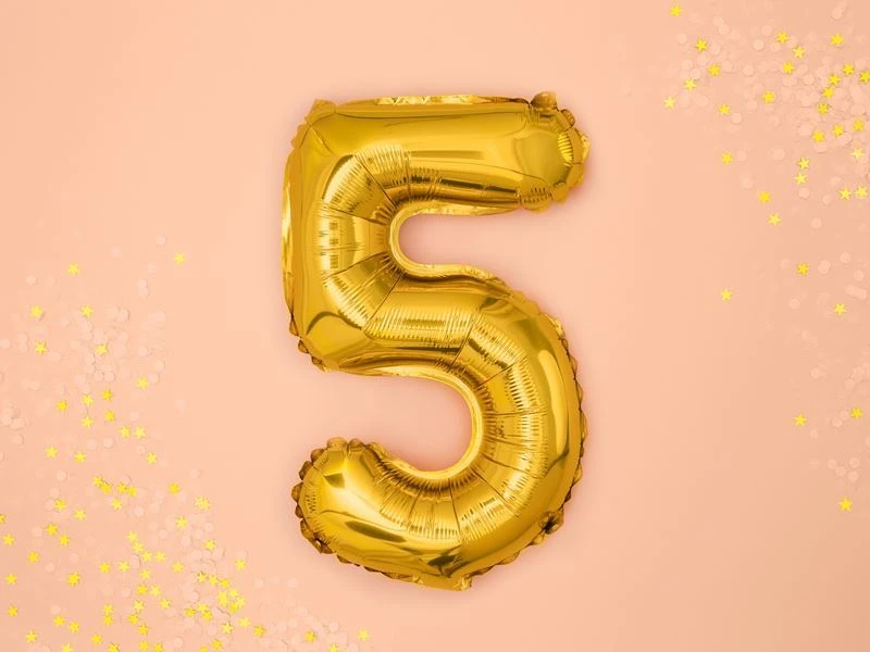 Foliový balónek číslice 5 ve zlaté barvě , udělej svou oslavu opravdu zářivou!