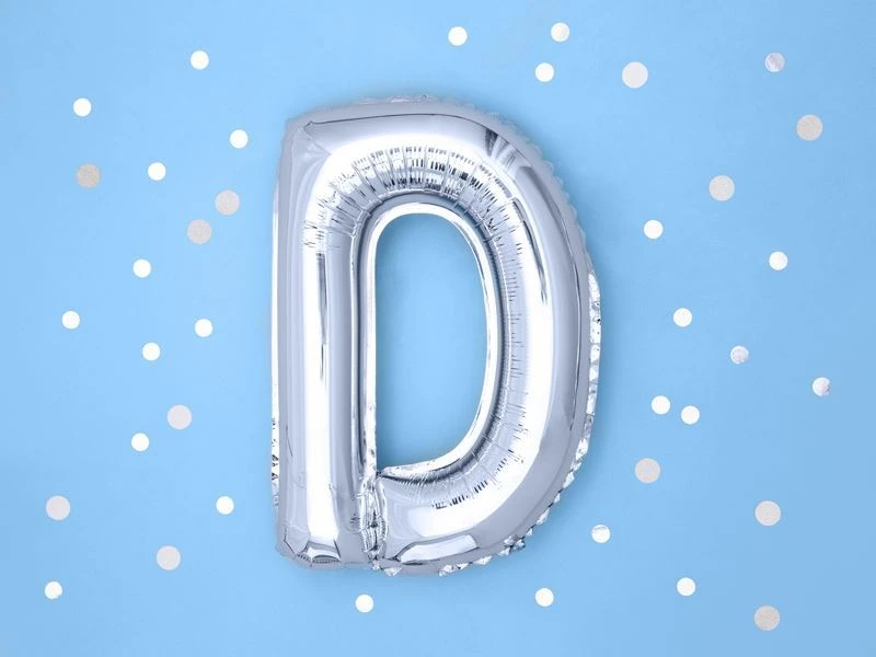 Balón foliový písmeno "D", 35cm, STŘÍBRNÝ (NELZE PLNIT HELIEM)