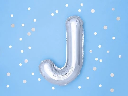 Balón foliový písmeno "J", 35cm, STŘÍBRNÝ (NELZE PLNIT HELIEM)