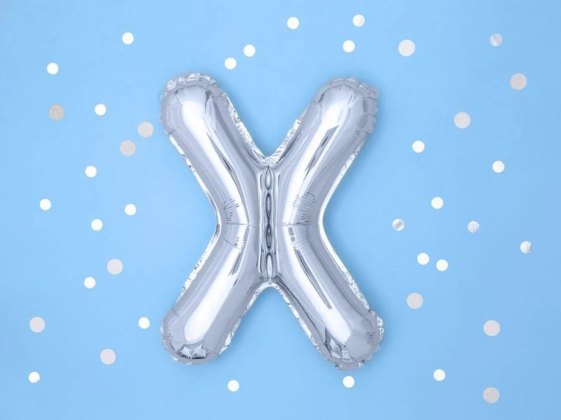 Balón foliový písmeno "X", 35cm, STŘÍBRNÝ (NELZE PLNIT HELIEM)