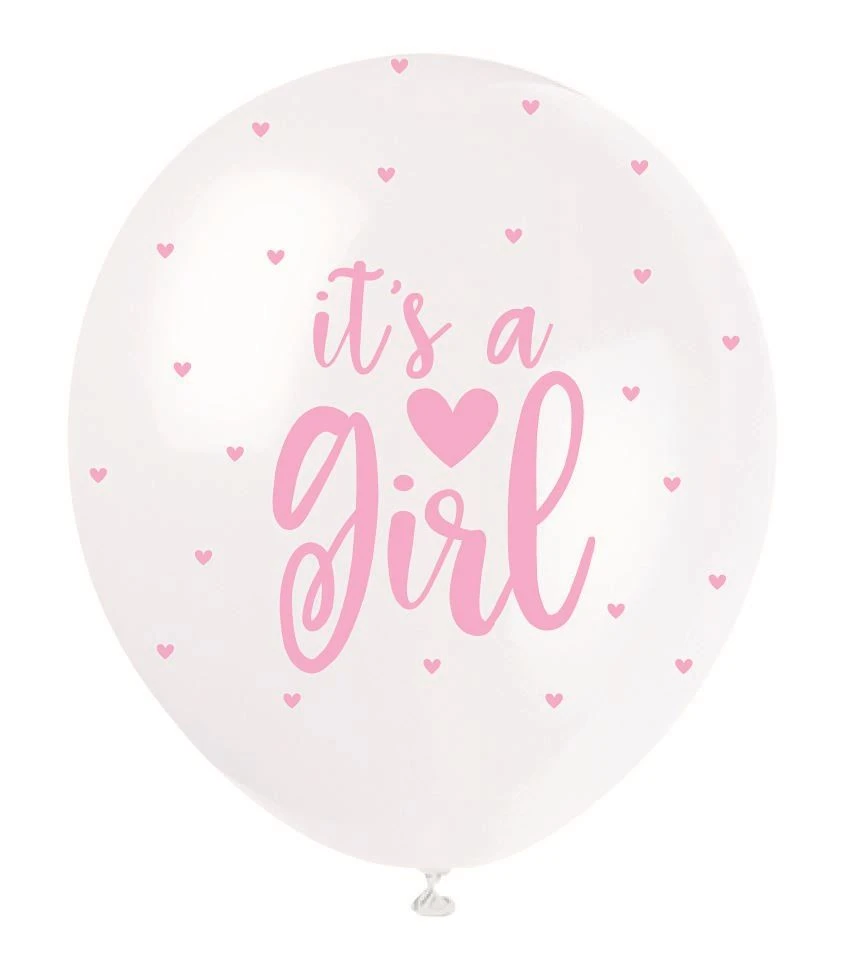 Latexové balónky ve světle růžové a bílé barvě s nápisem "It´s Girl" jsou ideální pro oslavy narození holčičky nebo tématickou baby shower párty.