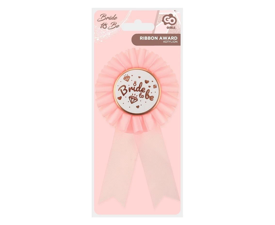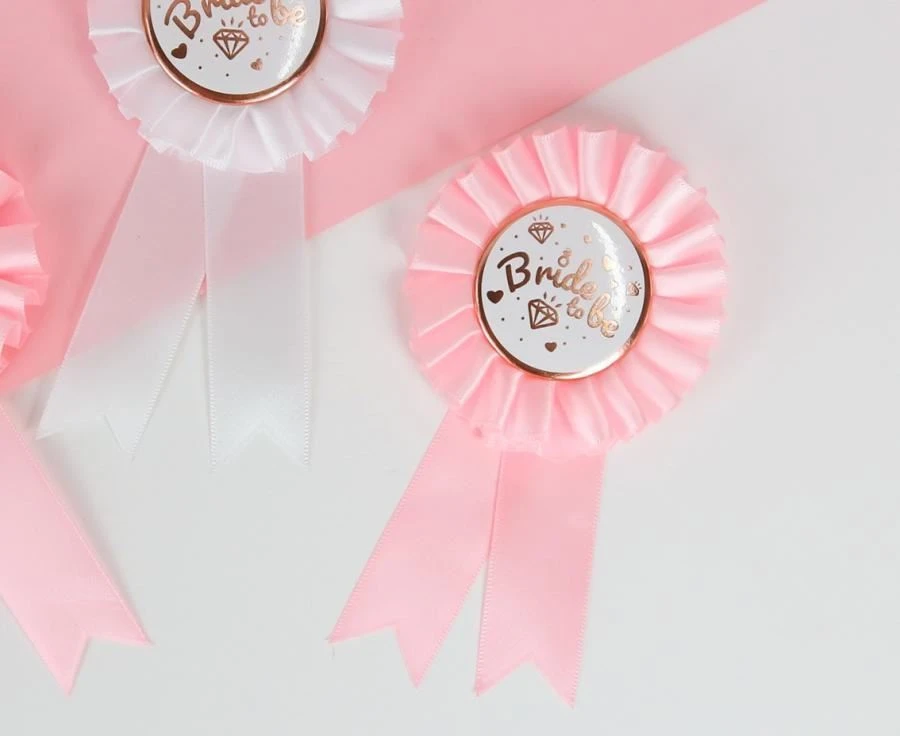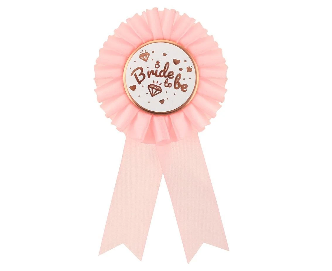 Růžová brož s růžovozlatým nápisem „Bride To Be" je perfektním doplňkěm pro párty rozlučky se svobodou.