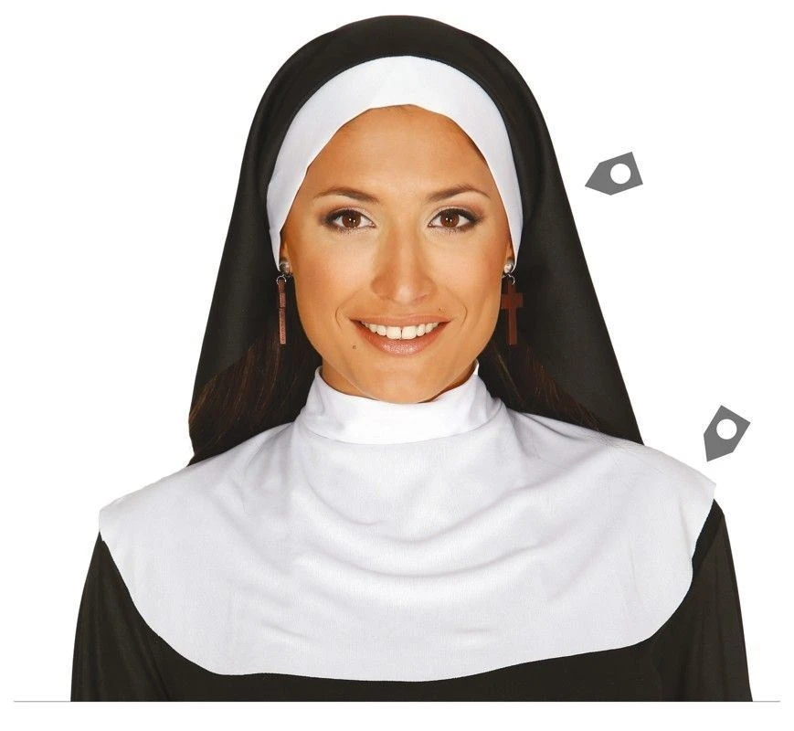 Tato černobílá pokrývka hlavy je nedílnou součástí každého karnevalového kostýmu jeptišky.