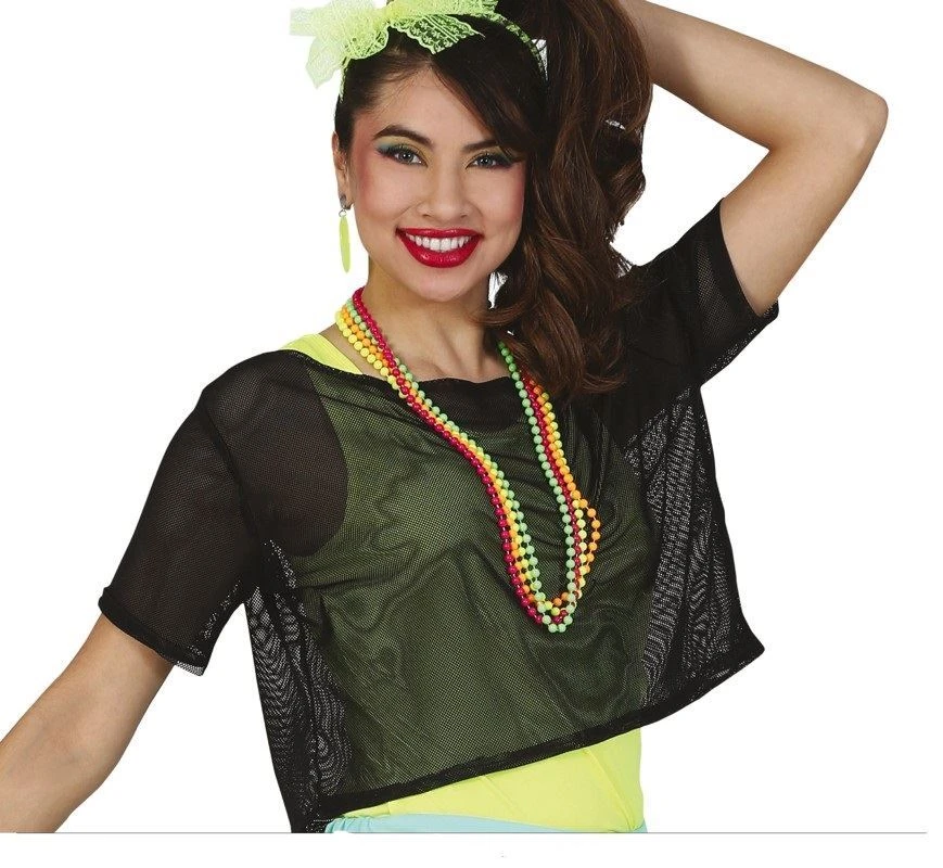Černé retro síťované tričko. Vhodné na retro párty.