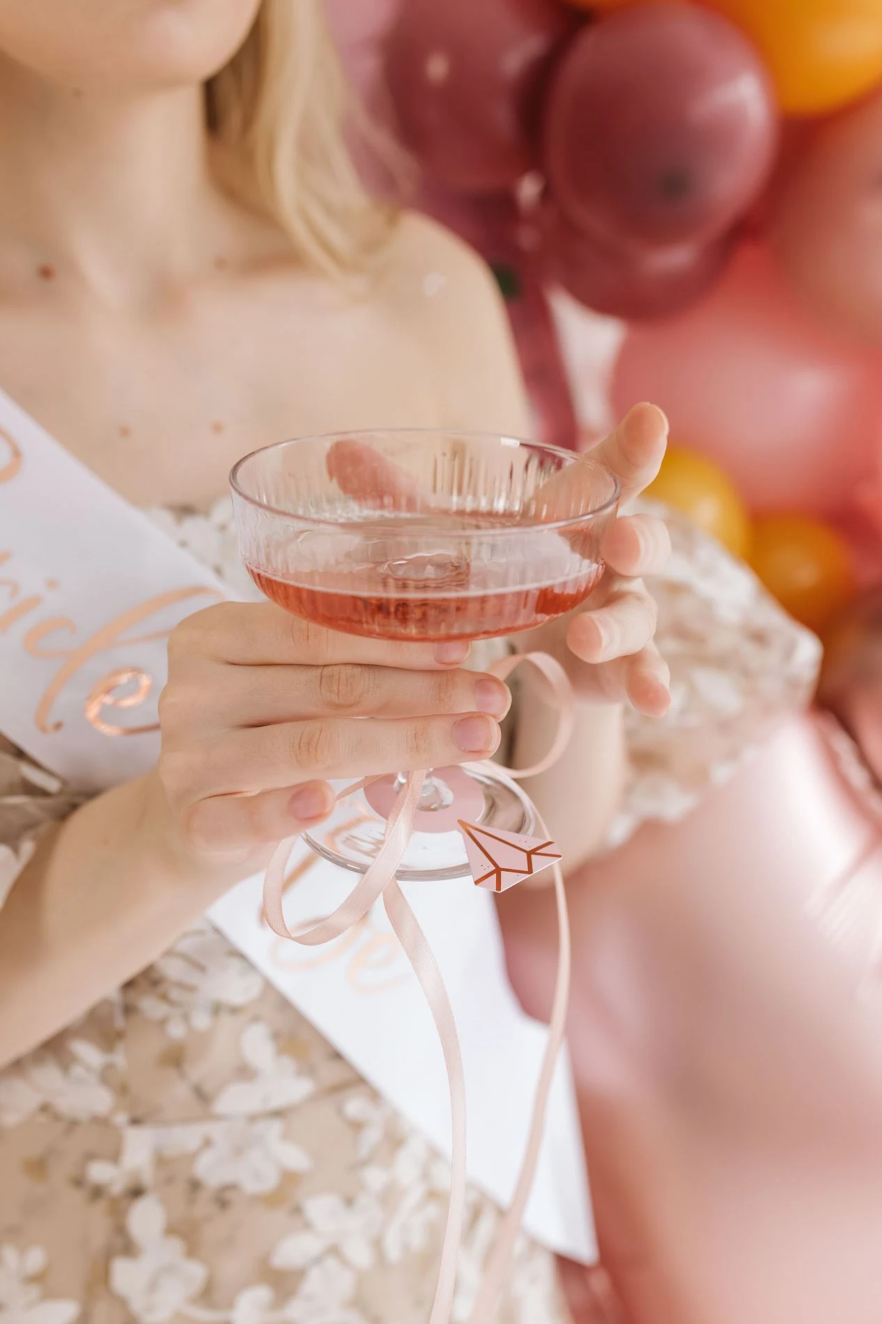 Papírové dekorační prsteny na skleničky na šampaňské či víno , v růžové barvě jsou skvělým doplňkem na rozlučku se svobodou.