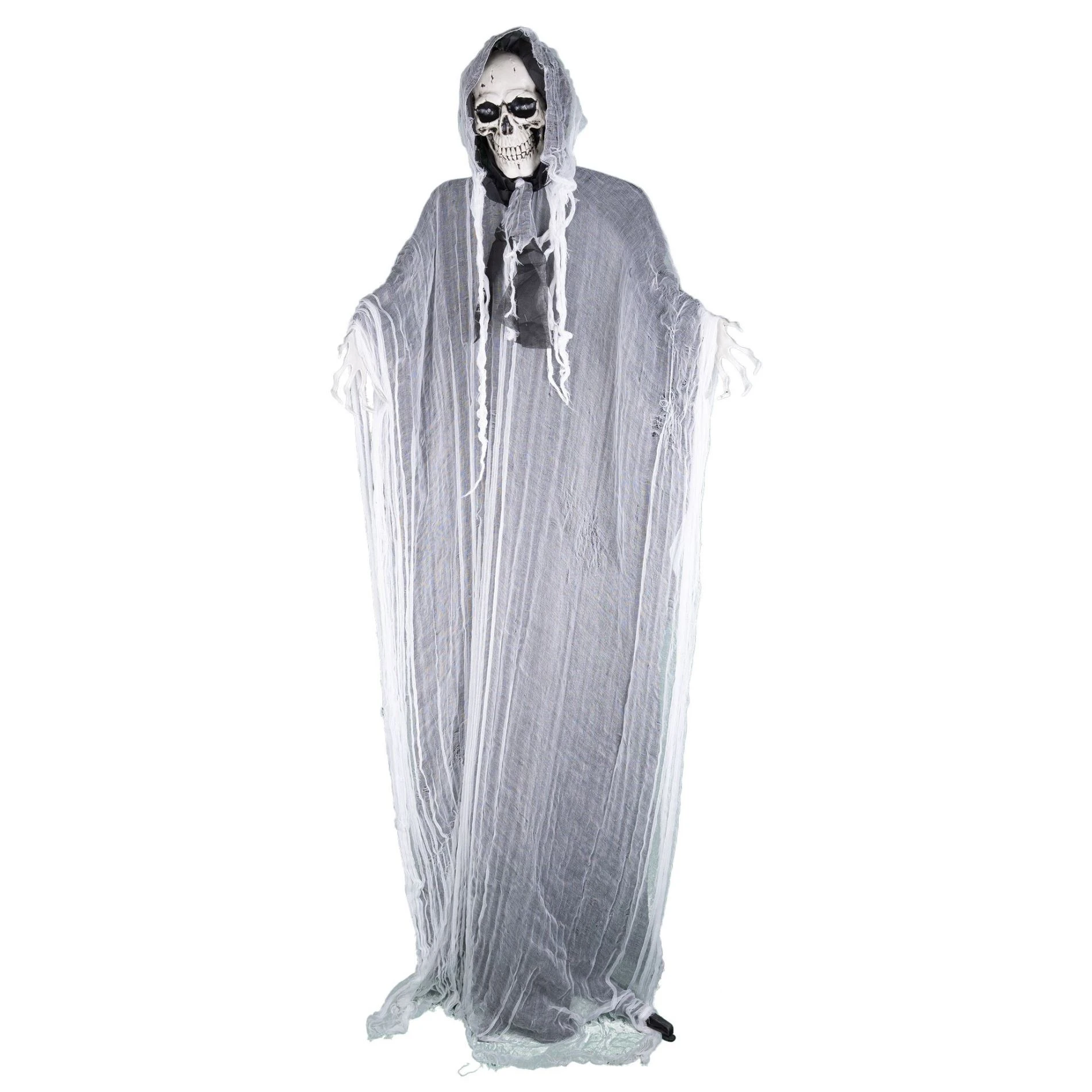 Tento obří strašidelný kostlivec na podstavci v dlouhém plášti je ideální dekorací, která zaručeně vyděsí každého návštěvníka vašeho domu nebo párty.