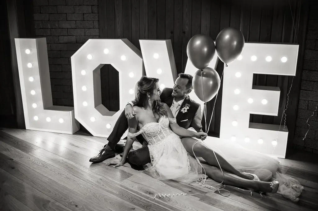 - originální svíticí dekorace L O V E o výšce 1,2 metry a šířce cca 3 metry
