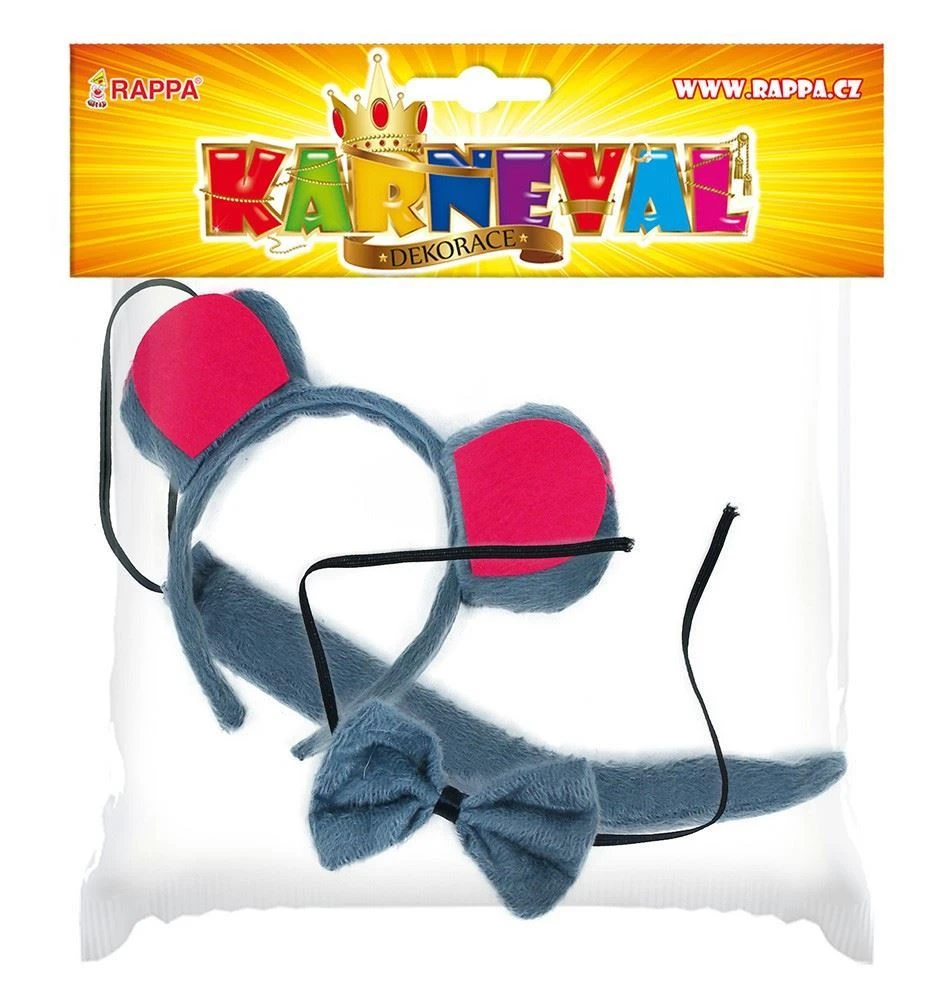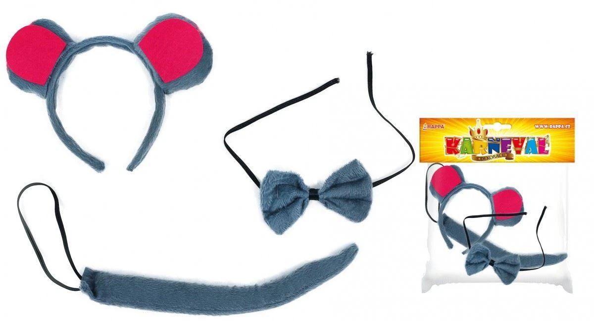 Karnevalové plyšové doplňky v myším stylu! Exkluzivní sada obsahuje ocas na gumičku, motýlka a čelenku s ušima.