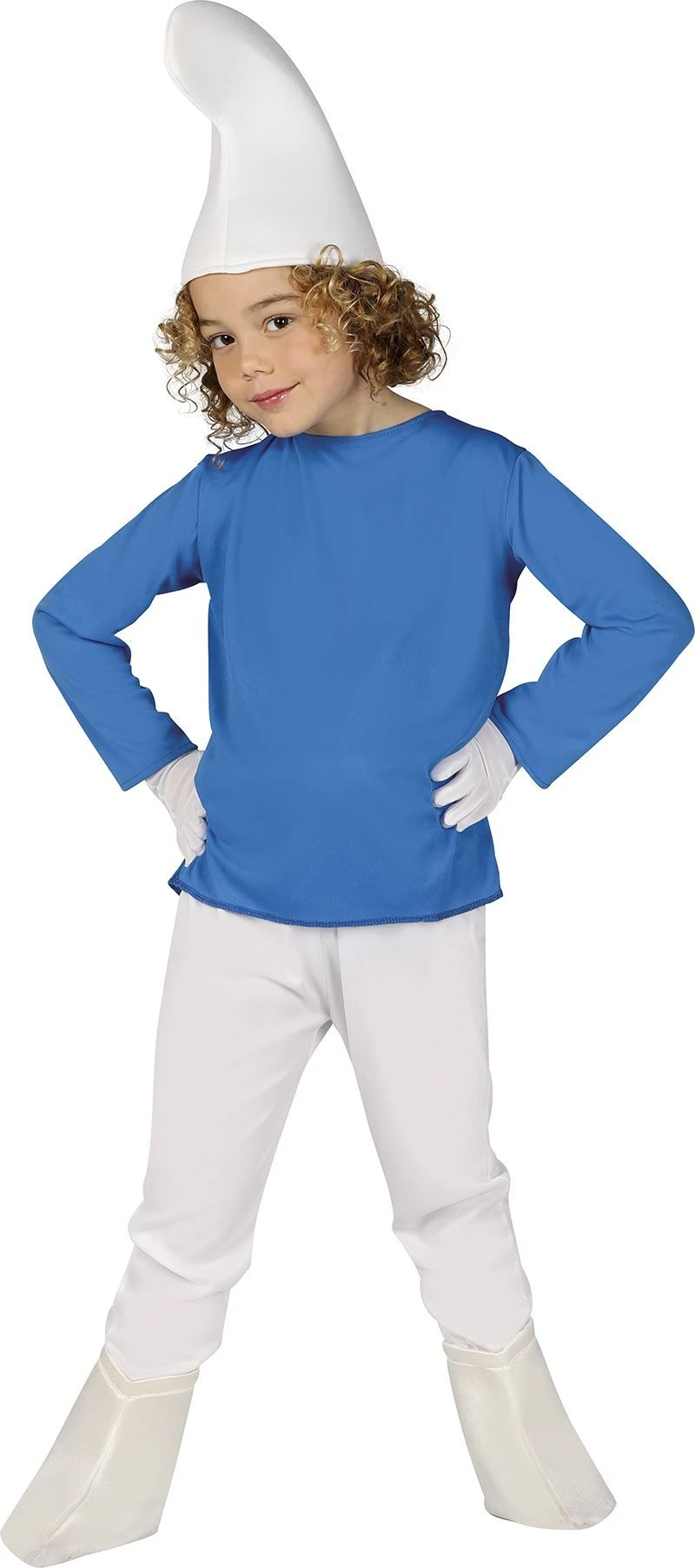 Šmoulí kostým obsahuje bílé kalhoty, modré tričko a bílou šmoulí čepici, které dotvoří váš úžasný kostým Šmouly.