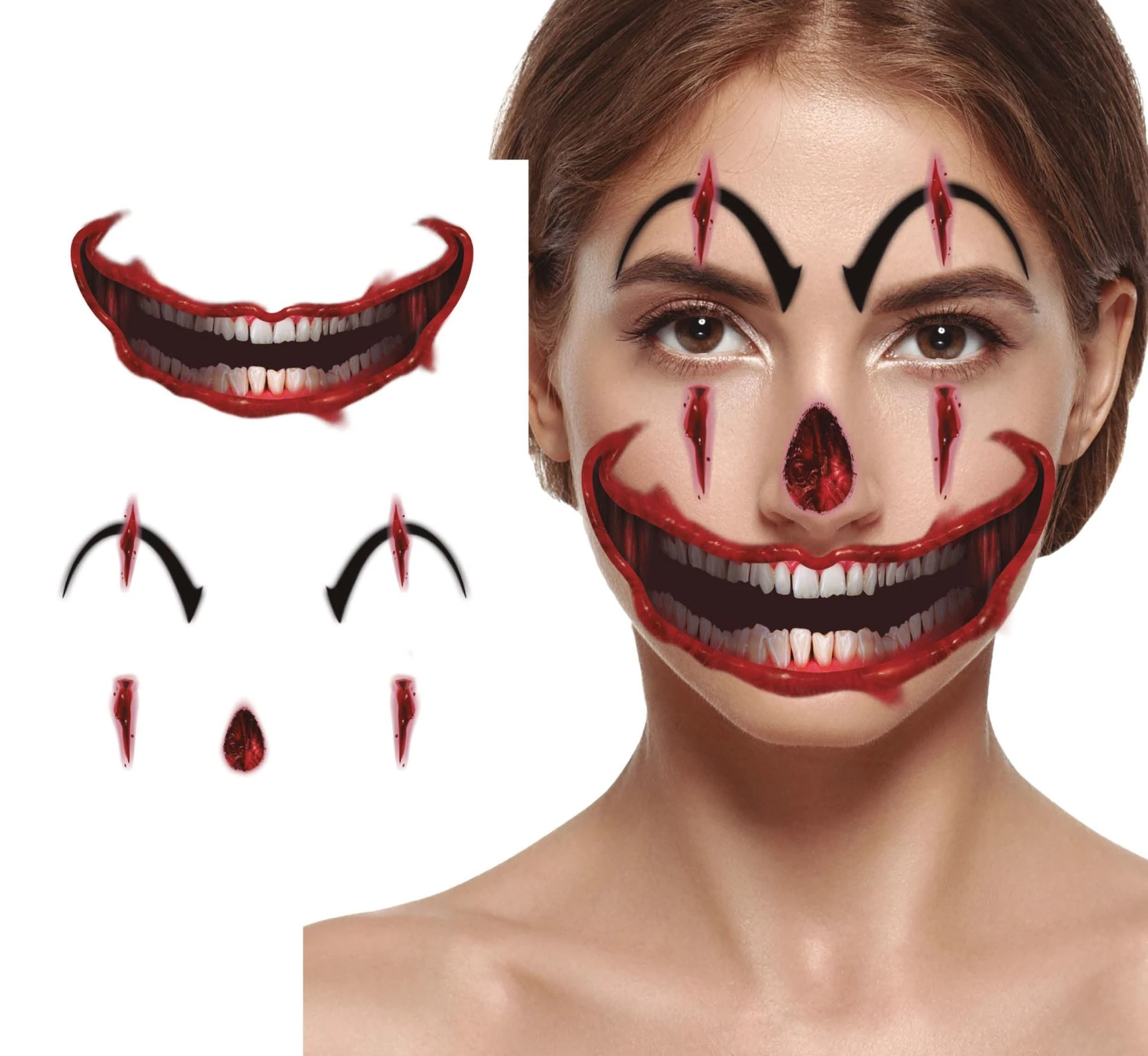 Dočasné tetování na obličej klaun - horor - Halloween - 6 ks