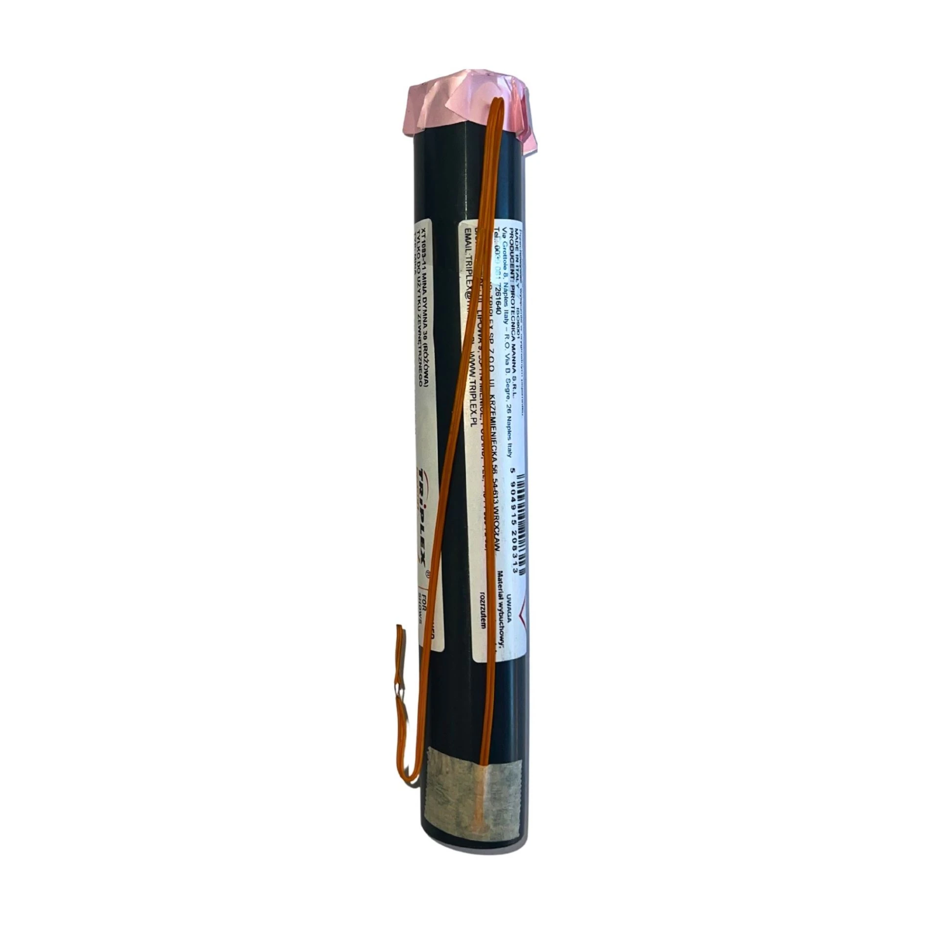 Dýmová mina růžová, denní efekt. Způsob iniciace výrobku je na elektrický odpal palníkem, který je součástí výrobku.