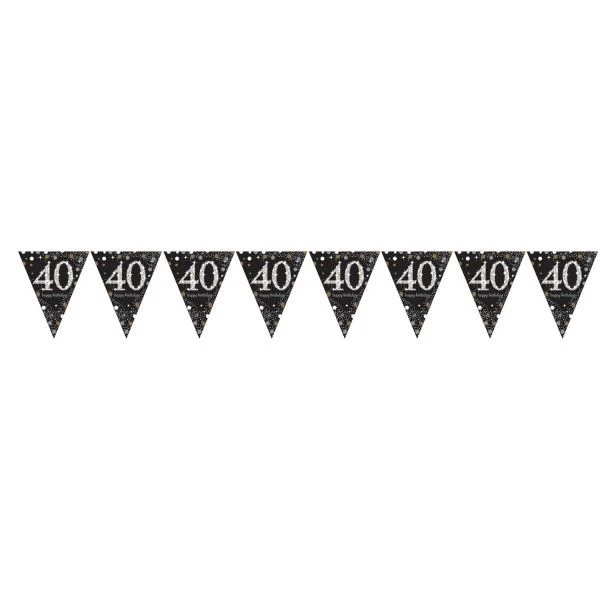 Vlaječková girlanda Sparkling Gold, která dodá svým třpytivých vzhledem narozeninové oslavě tu správnou atmosféru. Oslavte své čtyřicáte narozeniny stylově!