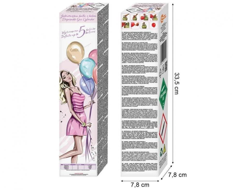 - Typ produktu: helium do balónků – jednorázová nádoba