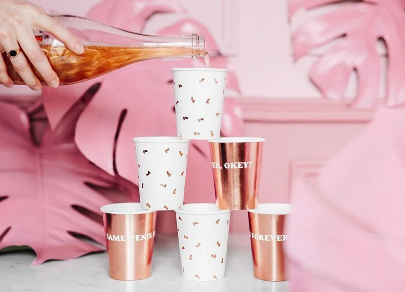 Kelímky Same penis forever - růžovo zlaté - rose gold - Rozlučka se svobodou-220ml-6ks