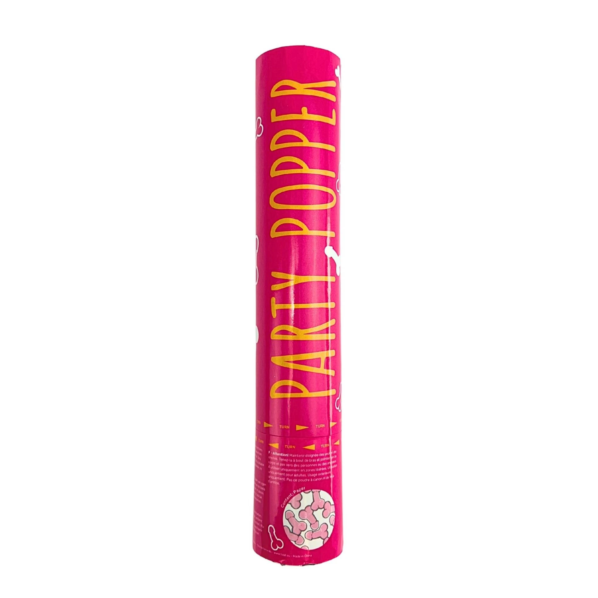 Konfety jsou uloženy ve válcovité tubě. Drží se v ruce a ovládají se mechanickým pootočením tubusu. Po vystřelení vyletí růžové papírové konfety ve tvaru penisu do výšky 5 až 8 metrů a rozptýlí se do okolí.