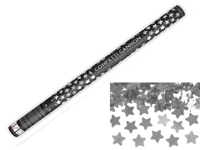 Konfety 80cm -STŘÍBRNÉ METALICKÉ HVĚZDIČKY - Silvestr