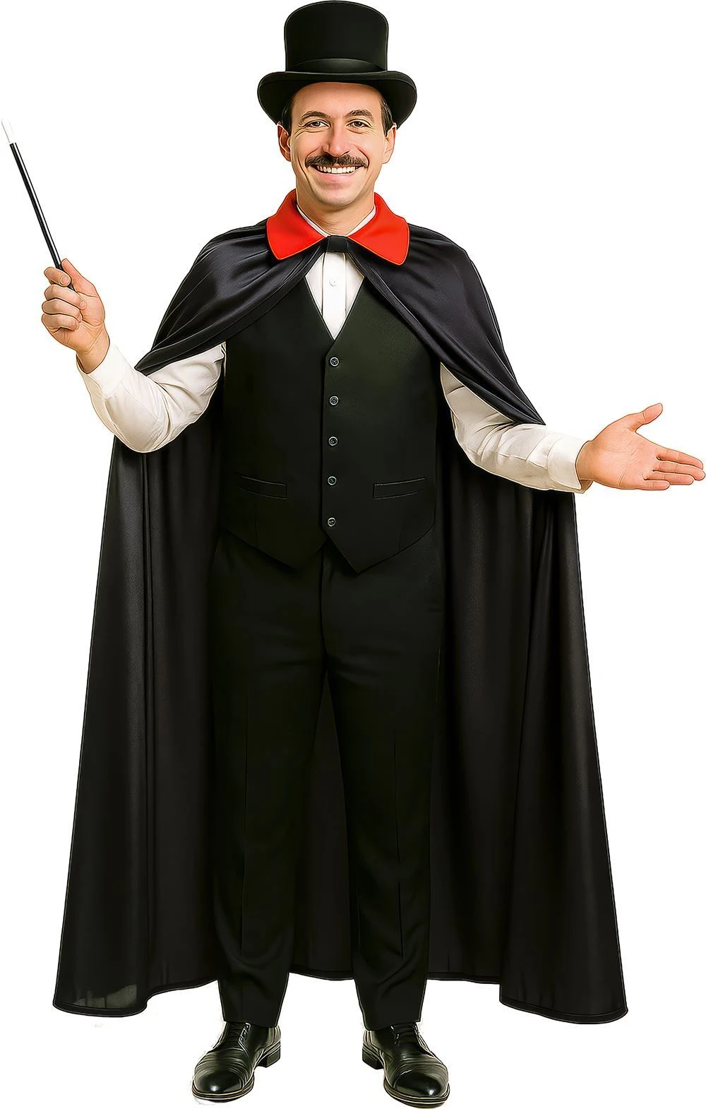 Obsah: strašidelný plášť s červeným límcem.