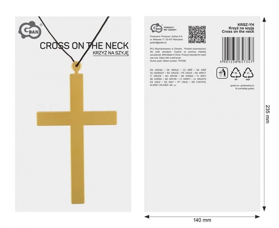 Kříž na krk - plastový 22 cm - Halloween
