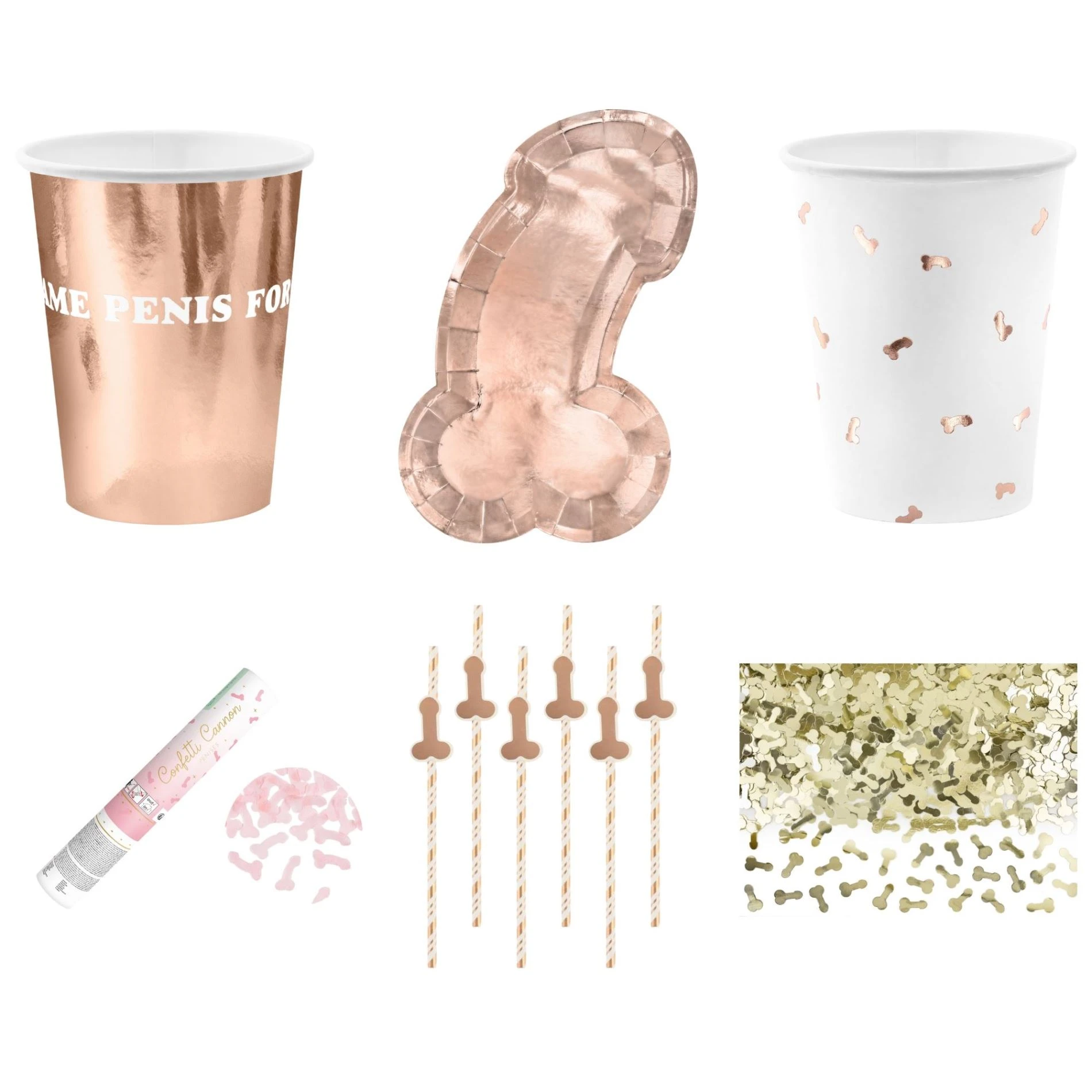 Rozjeď nezapomenutelnou rozlučku se svobodou ve velkém stylu! Tahle mega párty sada s odvážným motivem penisu je ideální volbou pro pořádnou dámskou jízdu plnou smíchu, zábavy a lehce provokativní atmosféry.
