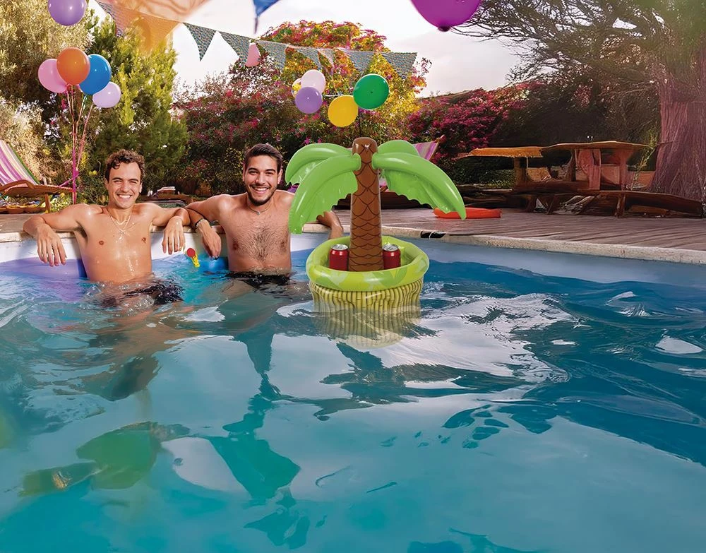 Originální a praktický nafukovací chladicí box na nápoje ve tvaru bazénku s palmou, oceníte na večírcích a oslavách, když si budete chtít dát osvěžující studený nápoj. Skvělý doplněk na zahradní nebo havajskou párty.