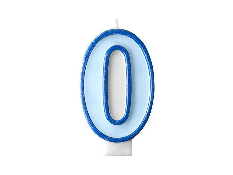 Modrá svíčka ve tvaru čísla 0 se bude svěle vyjímat na každém narozeninovém dortu.