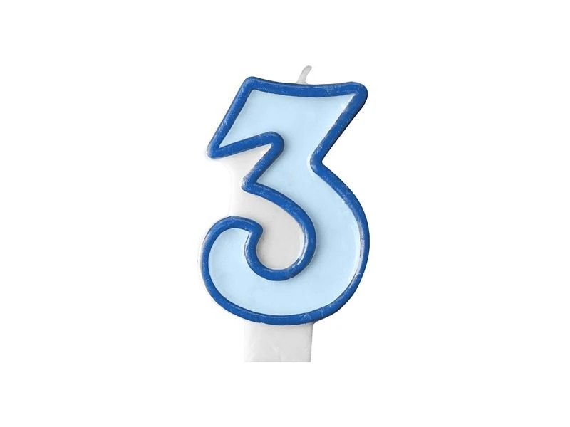 Modrá svíčka ve tvaru čísla 3 se bude svěle vyjímat na každém narozeninovém dortu.