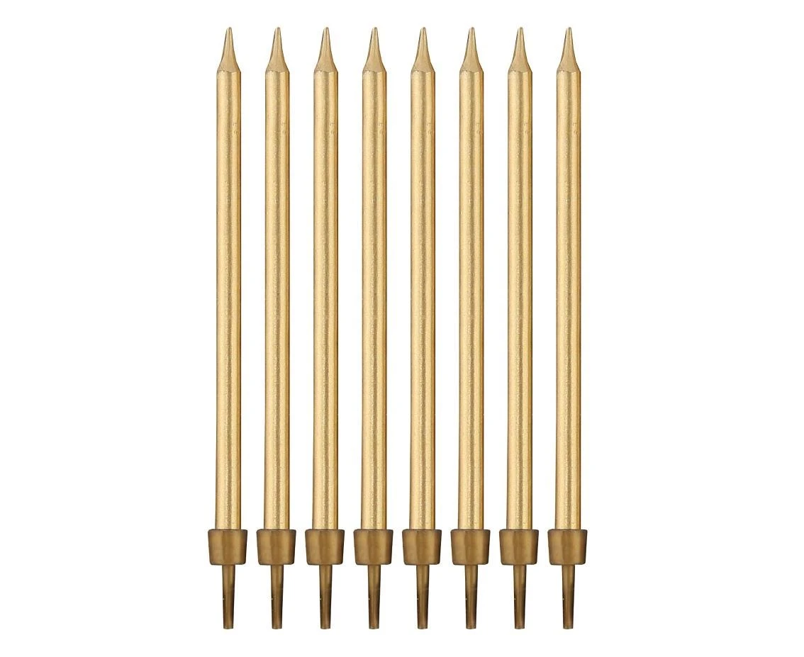 Narozeninové svíčky zlaté s podstavci – 10 cm (8 ks)