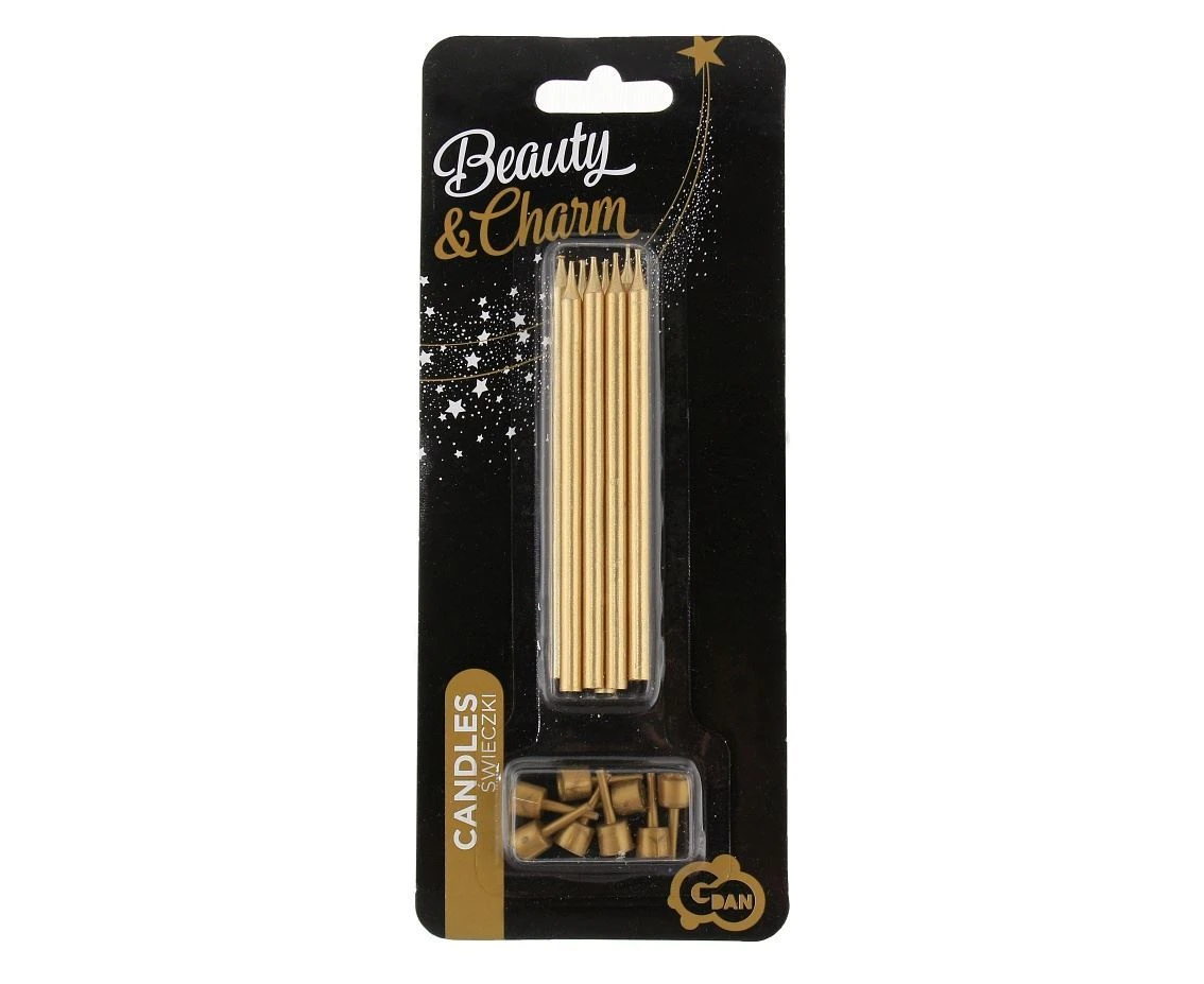 V balení najdete 8 kusů svíček v moderním zlatém odstínu, který působí luxusně a hodí se k jakékoliv barevné kombinaci dortu či dekorací. Každá svíčka je dlouhá 10 cm, takže krásně vynikne, ať už ji použijete na dort, koláč nebo cupcakes. Díky praktickým plastovým podstavcům je jejich umístění rychlé a bezpečné – svíčky pevně drží a vy si můžete užít přípravy bez stresu.