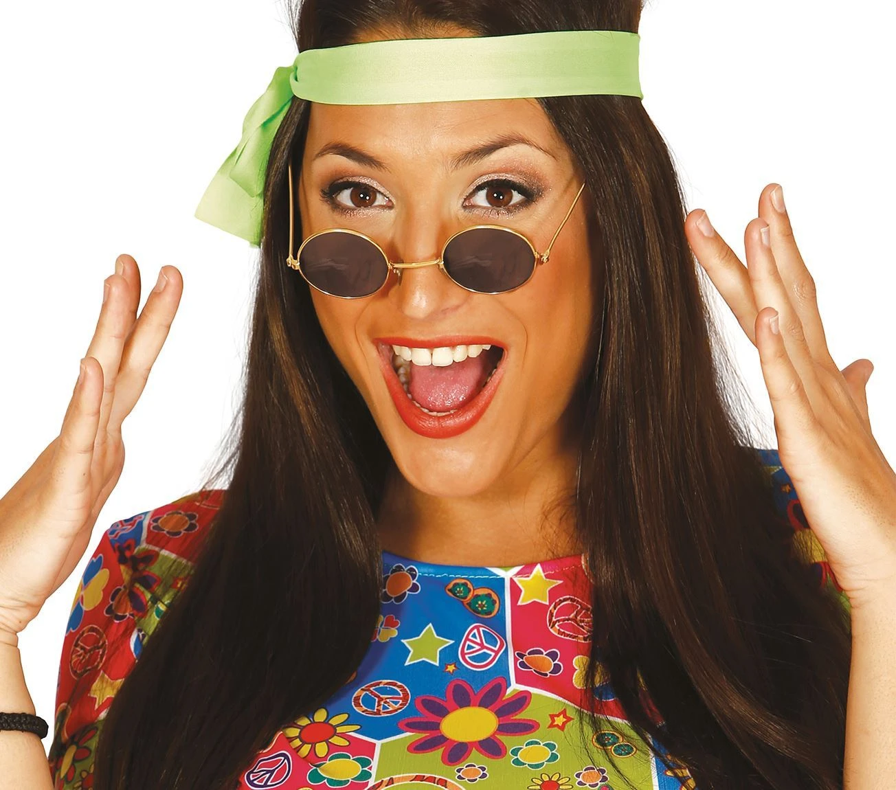 Kulaté brýle v hippie stylu jsou jasným symbolem éry flower power a hudební revoluce.