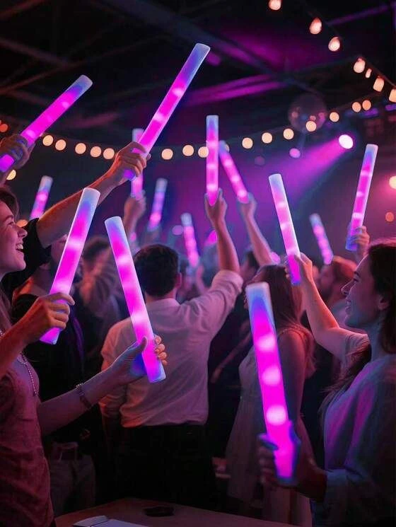 Párty LED pěnová tyč se světlem - růžová - 47 cm - 10 ks