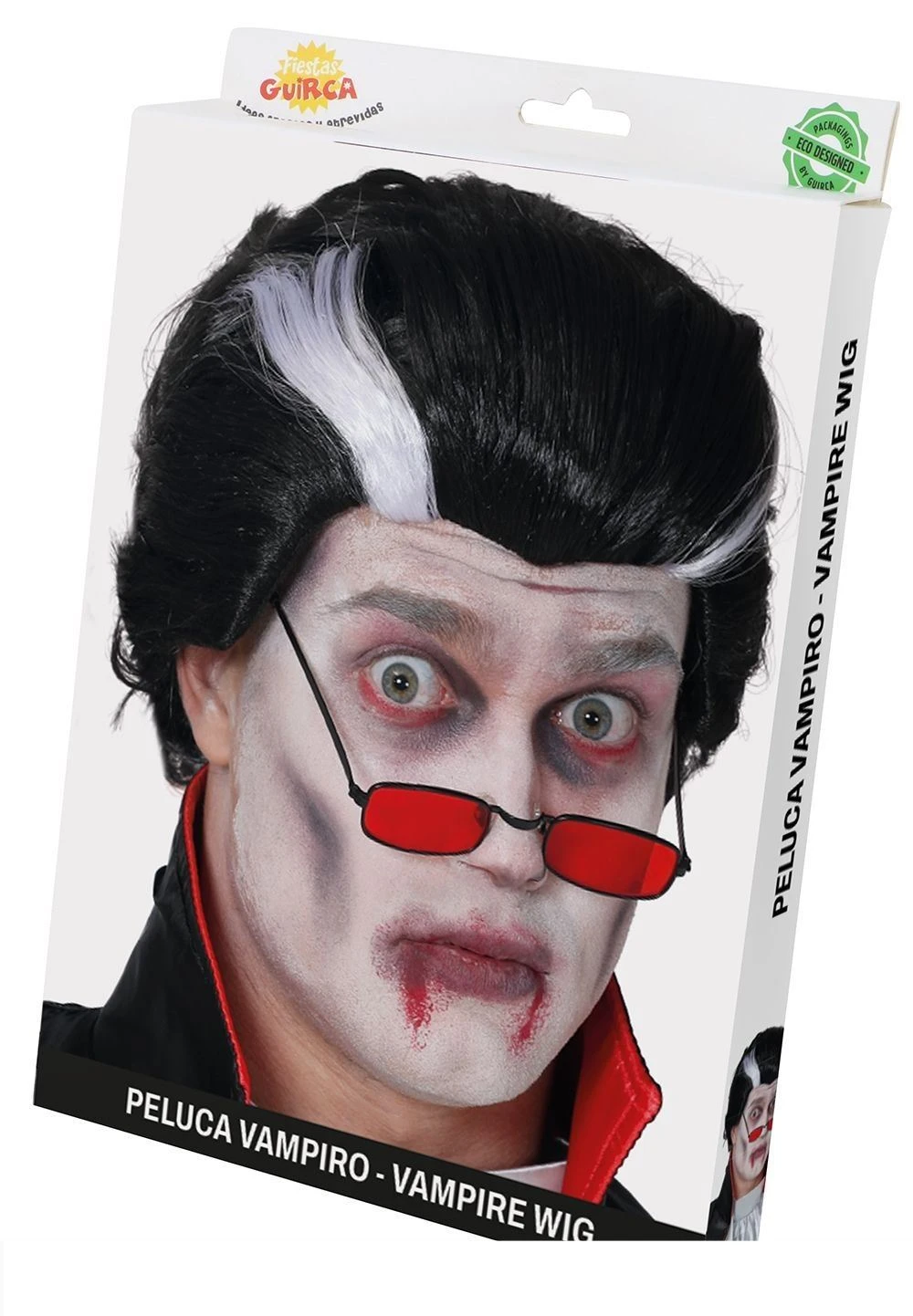 Černá paruka s bílými pruhy je ideálním doplňkem na Halloweenskou párty ke kostýmu upíra.