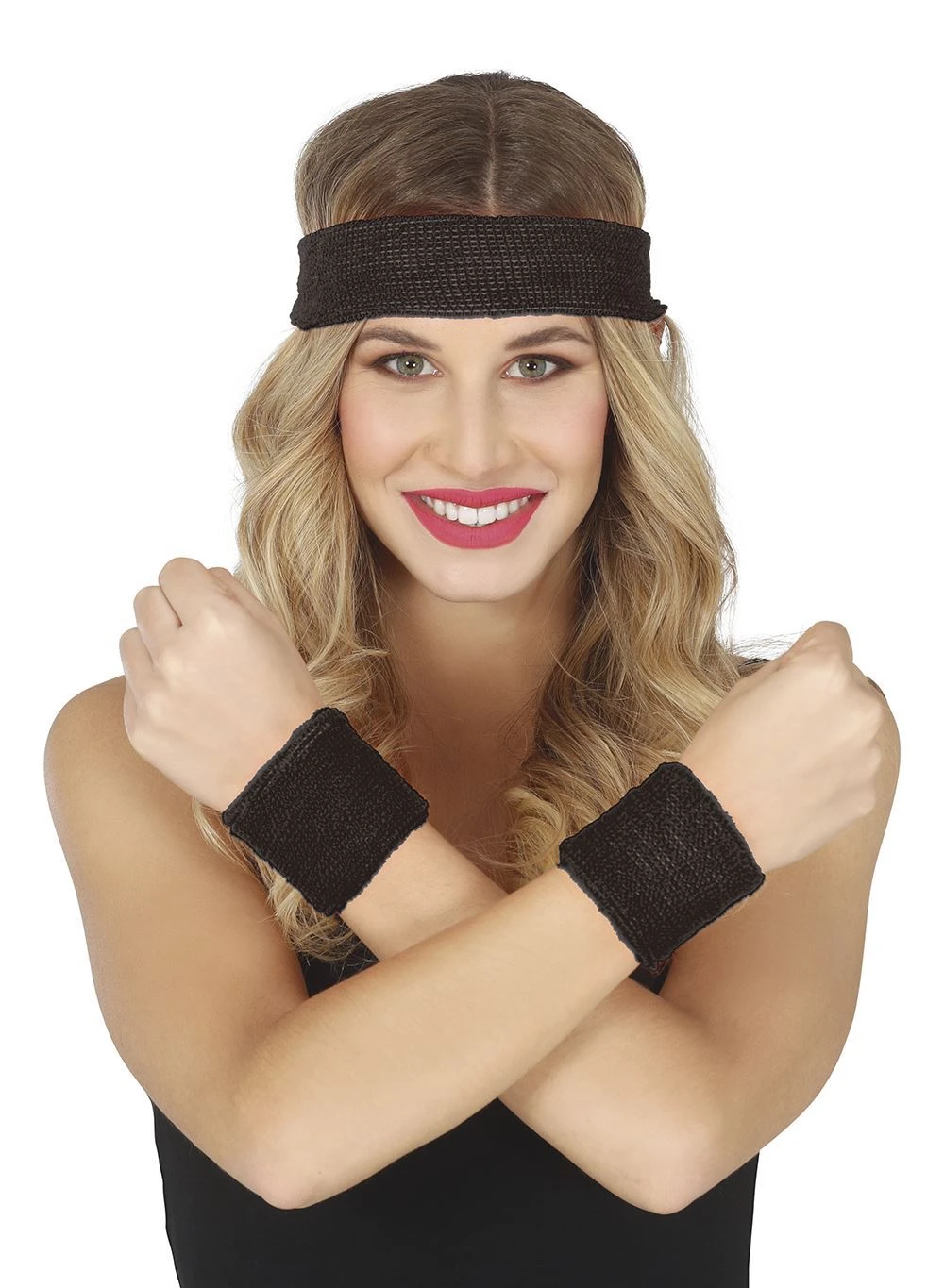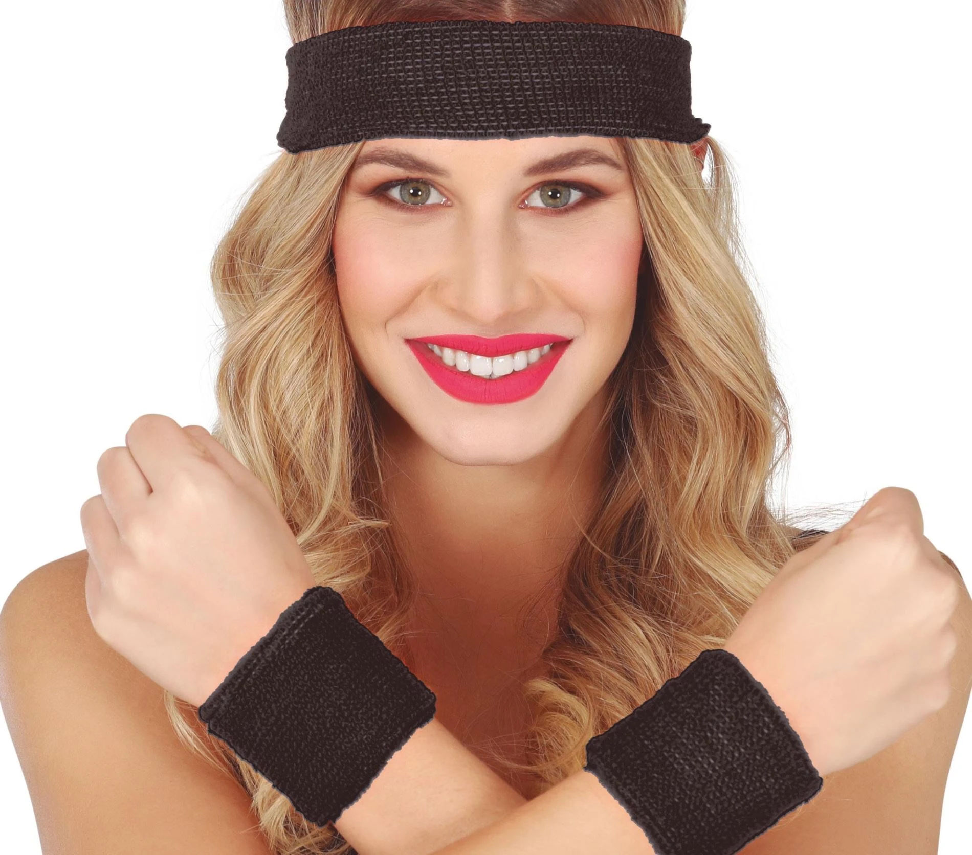 Černá čelenka a potítka dodají tvému outfitu pořádnou dávku disco energie.
