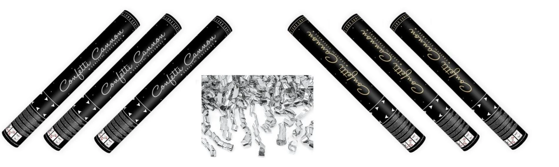 SADA Konfety 40cm - STŘÍBRNÉ STUŽKY - HOBLINKY- METALICKÉ - Silvestr - 6 ks