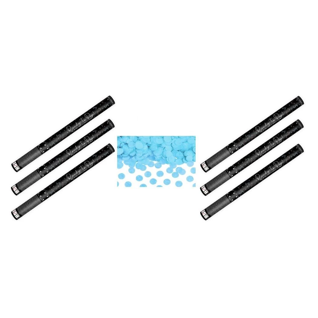 Sada 6 ks konfet o délce 60 cm s modrými kolečky.