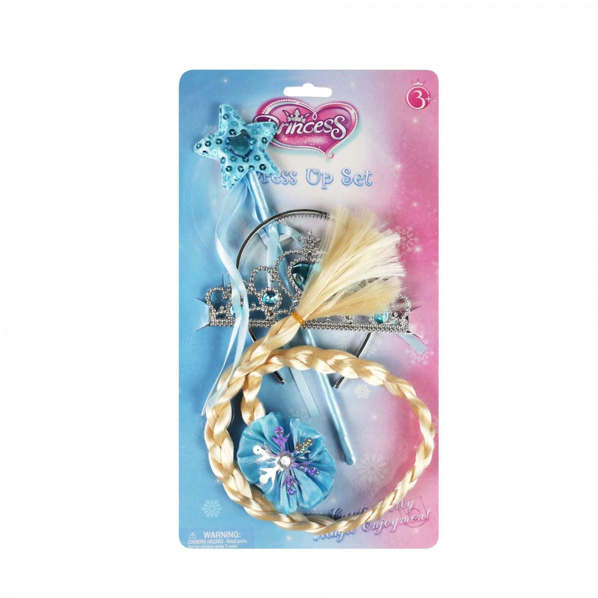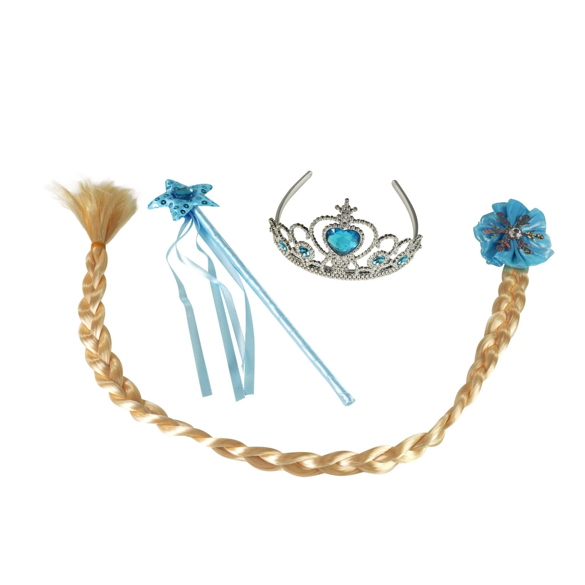Která z holčiček by se nechtěla stát alespoň na malou chvíli princeznou! Půvabný set korunky, hůlky a copu pro zimní princezny! Korunka je dekorována ozdobnými kamínky v modré barvě.