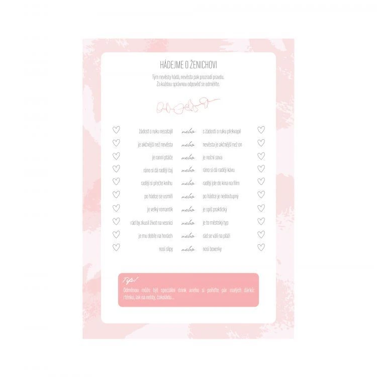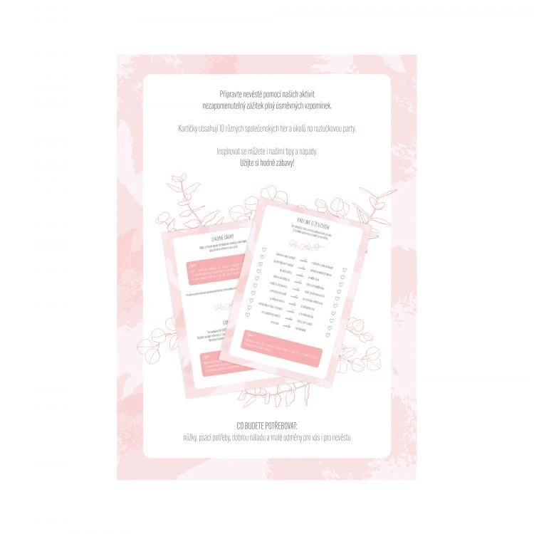 Vše máte připravené. Stačí otevřít krabici, zapojit tým nevěsty – a zábava může začít. Přirozeně, nenuceně a s dávkou humoru, která k rozlučce prostě patří.