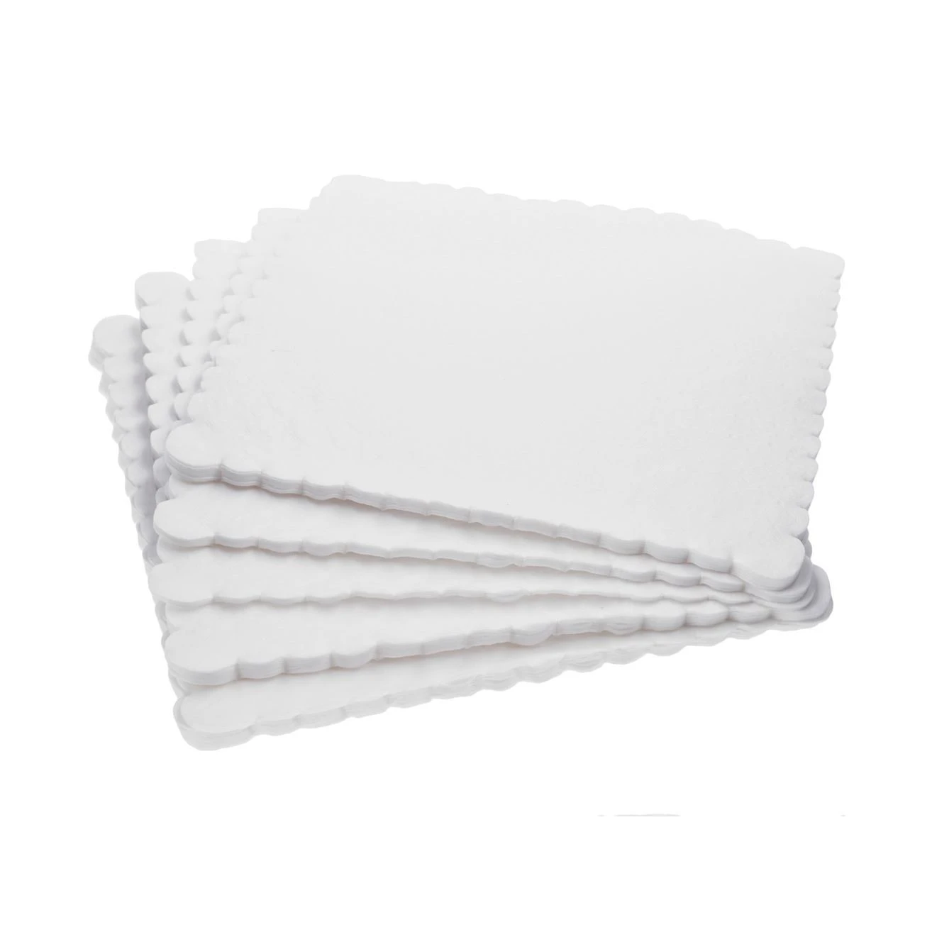 Ubrousky mají vyřezávaný vzor a čtvercový tvar.