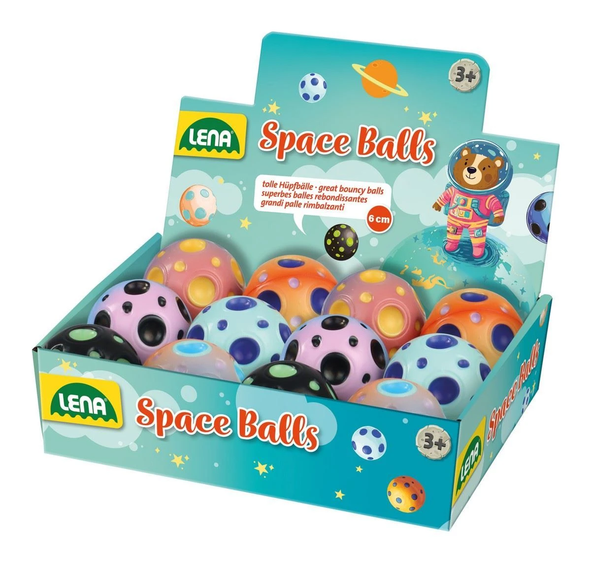 Měkký gumový míček o průměru cca 6 cm nabízí originální design inspirovaný vesmírem a planetami, který okamžitě zaujme.