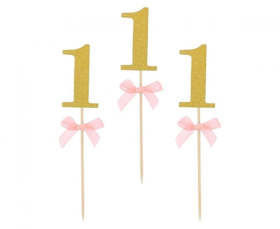 Zapichovátka do cupcaku 1. narozeniny - holka - růžové - 10 ks