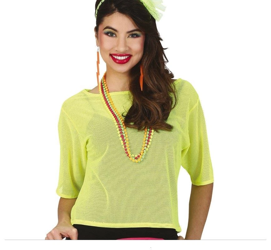 Žluté retro síťované tričko. Vhodné na retro párty. Jdete na retro párty a nevíte co na sebe? Tohle je ideální kostým. Oživte svůj vzhled odvážným stylem s tímto síťovaným žlutým retro tričkem, které propůjčí vašemu outfitu výrazný nádech minulosti.